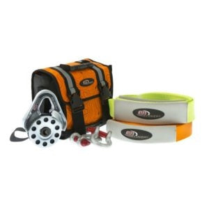 The updated ARB Essentials Recovery Kit sports a new heavy-duty PVC outer shell and modernized colors. The 600gsm PVC outer provides a rugged exterior that is perfect for recovery situations because it makes cleaning easier and helps keep the bag and its contents from getting damp. Included in the kit is the highly regarded and awarded ARB 17,600lbs vehicle snatch strap. The ARB snatch strap which has been a winner of many recovery strap tests throughout Australia and the world, has a genuine 20% stretch to reduce shock to components on your vehicle and will assist in recovery situations. The ARB Essentials Recovery Kit also includes an ARB 19,800lbs Ultra Light Snatch Block, two type "S" galvanized 4.75t rated shackles, one set of cow grain leather palm with cow split leather back gloves, a 10ft ARB Recovery Tree Protector, and the updated 600gsm PVC recovery bag with multiple compartments highlighted in the ARB topographic styling. When selecting a vehicle recovery strap (snatch strap) it is recommended that the minimum breaking strength of the strap should be between two and three times the gross vehicle mass (GVM) of any vehicle it is used with, and that the strap must be suited to the GVM of the lighter of the two vehicles used in the recovery process. The 17,600lbs recovery strap is therefore suitable for vehicles with a GVM between 5800 and 8800 lbs, encompassing a majority of 4WD vehicles. This is only to be used as a general guide.