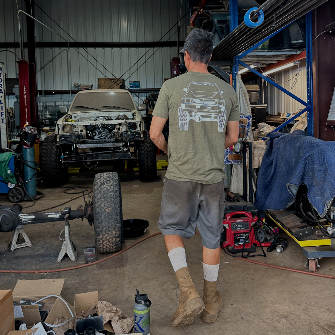Premium NWT 2nd Gen Green T-Shirt featuring legendary Toyota pickup graphics and ultra-soft tri-blend construction. This exceptionally comfortable tee showcases the iconic 2nd-Generation Toyota pickup design with high-contrast graphics on premium, lightweight fabric with a smooth, silky feel and superior drape.