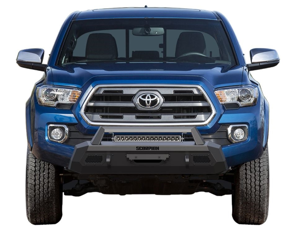 Tacoma Winch Ready Front Bumper w/LED Light Bar Tactical Center Mount 16-21 Toyota Tacoma Scorpion Extreme