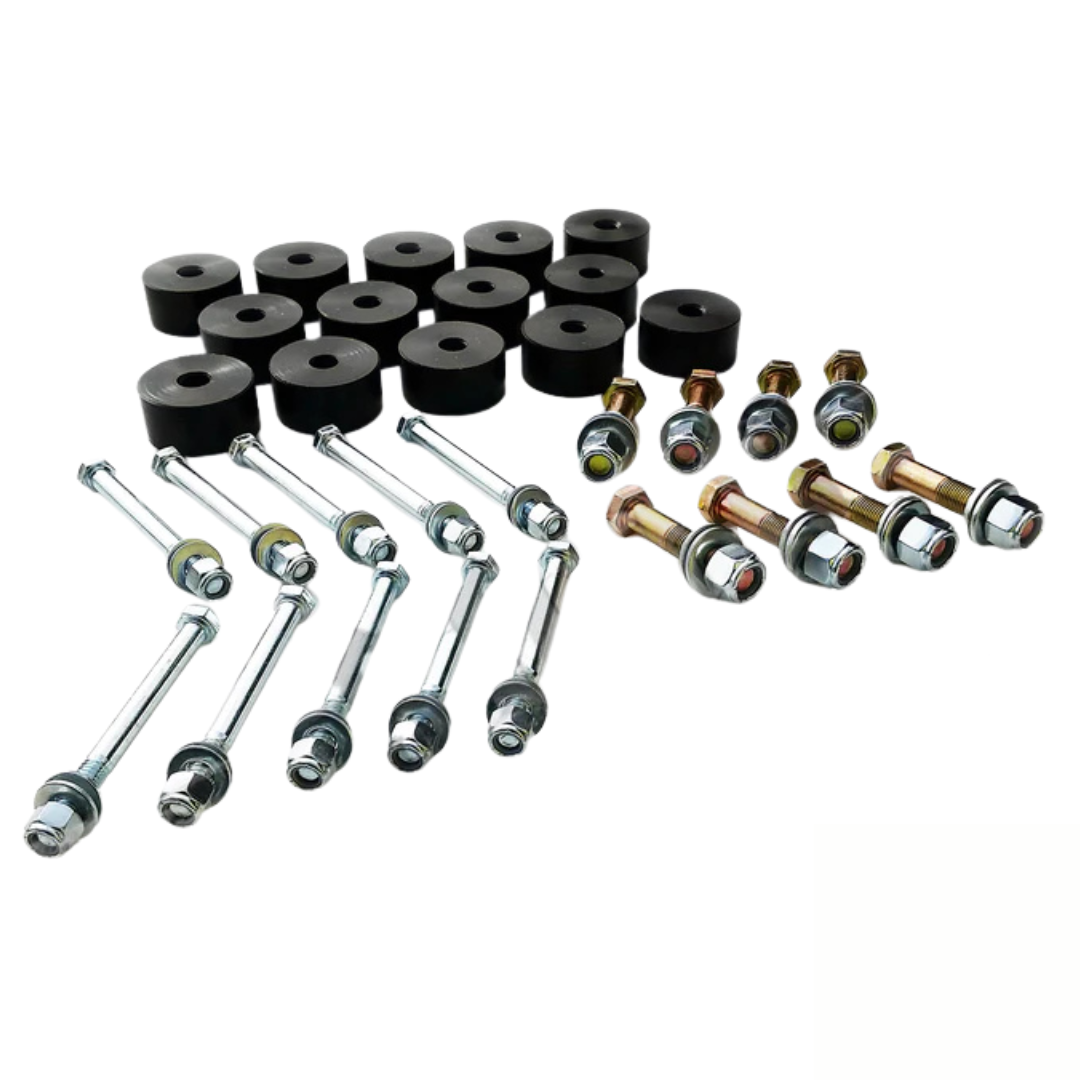 1" body lifts are recommended for proper clearance and are designed to work with our DIY Motor Mounts. The Lift Kit features precision CNC-machined black UHMW body blocks, engineered for durability and a perfect fit. The kit includes all necessary bolts, nuts, washers, and body blocks, with extra 3/8" hardware to accommodate different vehicle years. Depending on your model, you’ll use the appropriate combination of longer or shorter bolts to ensure a secure and professional installation. Ideal for enhancing ground clearance while maintaining factory alignment and integrity.