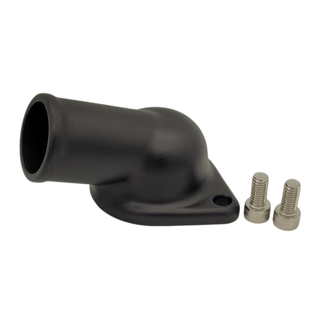 The Billet-Aluminum Thermostat Housing upgrades your coolant intake system, designed to replace cracked or broken plastic housings. Crafted from durable aluminum, it offers enhanced strength and reliability. Installation requires removal of the original plastic housing and studs, after which the new housing can be securely mounted using the included stainless steel fasteners. This upgrade not only ensures a leak-free, long-lasting fit but also adds a polished, professional appearance to your engine bay.