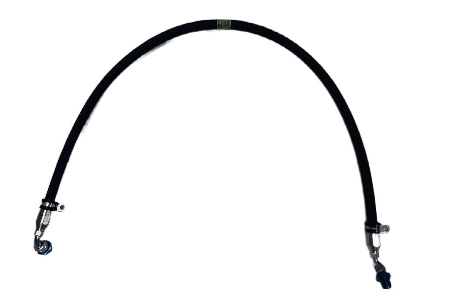 This high-pressure line bridges the gap between the 1UZ power steering pump and the recipient chassis' steering system, providing the correct pressure flow and fitting sizes to maintain full power steering assist. It eliminates the need for custom fabrication, risky re-flaring, or spliced lines.